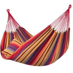 Deze fijne hangmat is afkomstig uit de Double Rainbow serie van Tropilex. De hangmat is vervaardigd van 100% Polycotton, een speciale combinatie van katoen en polyester waarbij de stof dikker is geweven. Hierdoor is de hangmat zeer sterk en duurzaam, zo gaat deze lang mee. Daarnaast zorgt de stof er voor dat de hangmat zacht en comfortabel aanvoelt. De stof is tevens geschikt tegen een lichte regenbui, wanneer de hangmat niet wordt gebruikt, wordt geadviseerd de hangmat op een droge plek te bewaren. De hangmat heeft een maximaal draaggewicht van 180 kg en is geschikt voor maximaal twee personen. De hangmat heeft een fijne grote oppervlakte van 230 x 160 cm, waar u heerlijk in kunt ontspannen. De hangmat wordt geleverd exclusief standaard of bevestiging set.