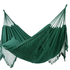 Deze fijne hangmat is afkomstig uit de Family Fine serie van Tropilex. De hangmat is vervaardigd van 100% Polycotton, een speciale combinatie van katoen en polyester waarbij de stof dikker is geweven. Hierdoor is de hangmat zeer sterk en duurzaam, zo gaat deze lang mee. Daarnaast zorgt de stof er voor dat de hangmat zacht en comfortabel aanvoelt. De stof is tevens geschikt tegen een lichte regenbui, wanneer de hangmat niet wordt gebruikt, wordt geadviseerd de hangmat op een droge plek te bewaren. De hangmat heeft een maximaal draaggewicht van 200 kg en is geschikt voor maximaal twee personen. De hangmat heeft een fijne grote oppervlakte van 280 x 180 cm, waar u heerlijk in kunt ontspannen. De hangmat wordt geleverd exclusief standaard of bevestiging set.