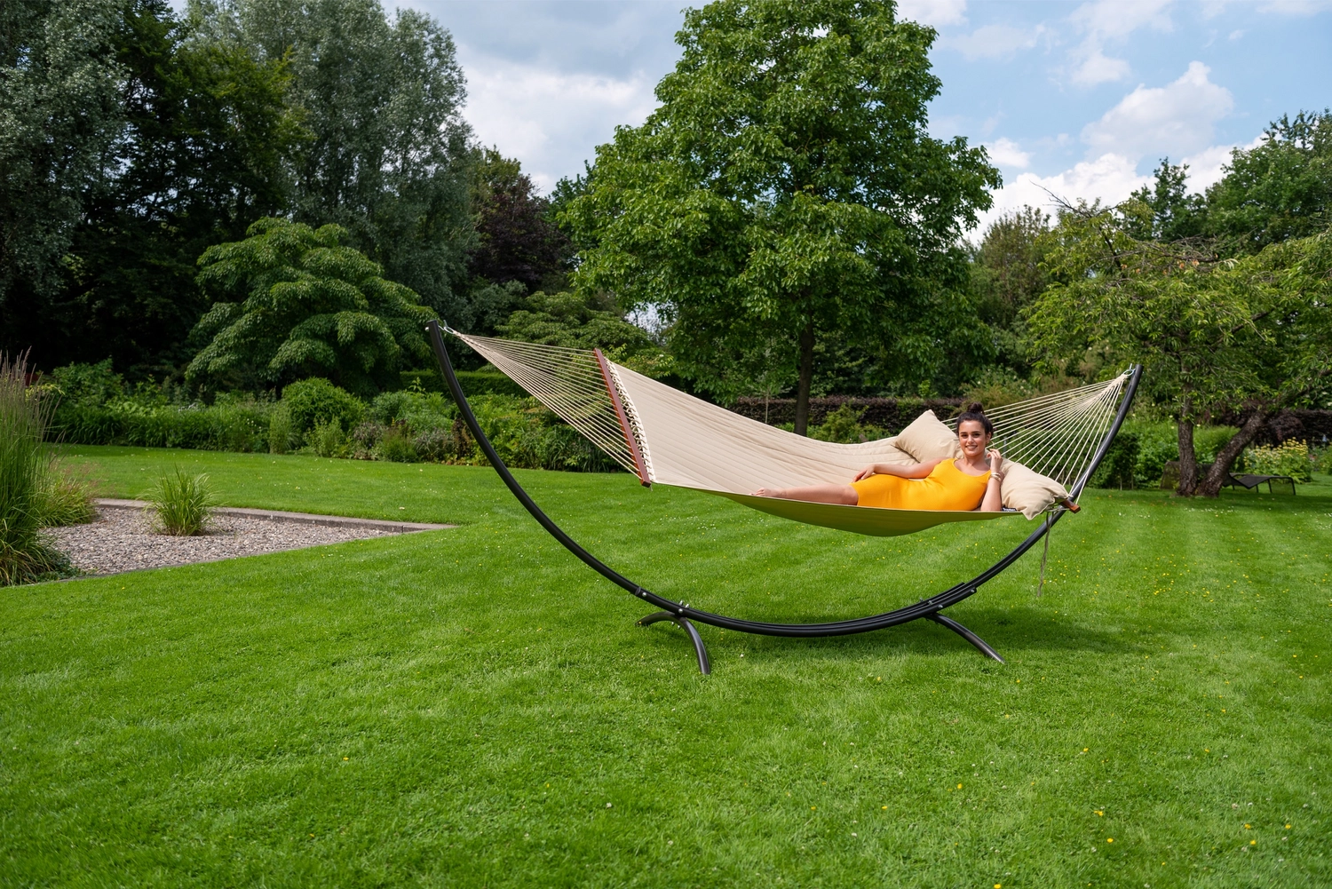 Deze fijne hangmat is afkomstig uit de Family Vegas serie van Tropilex. De hangmat is vervaardigd van Olefin, een speciale combinatie van polyester waarbij de licht gewicht stof speciaal geschikt is voor buitengebruik. Hierdoor is de hangmat zeer sterk en duurzaam, zo gaat deze lang mee. Daarnaast zorgt de stof er voor dat de hangmat zacht en comfortabel aanvoelt. Wanneer de hangmat niet wordt gebruikt, wordt geadviseerd de hangmat op een droge plek te bewaren. De hangmat heeft een maximaal draaggewicht van 180 kg en is geschikt voor maximaal twee personen. De hangmat heeft een fijne grote oppervlakte van 210 x 140 cm, waar u heerlijk in kunt ontspannen. De hangmat wordt geleverd exclusief standaard of bevestiging set.