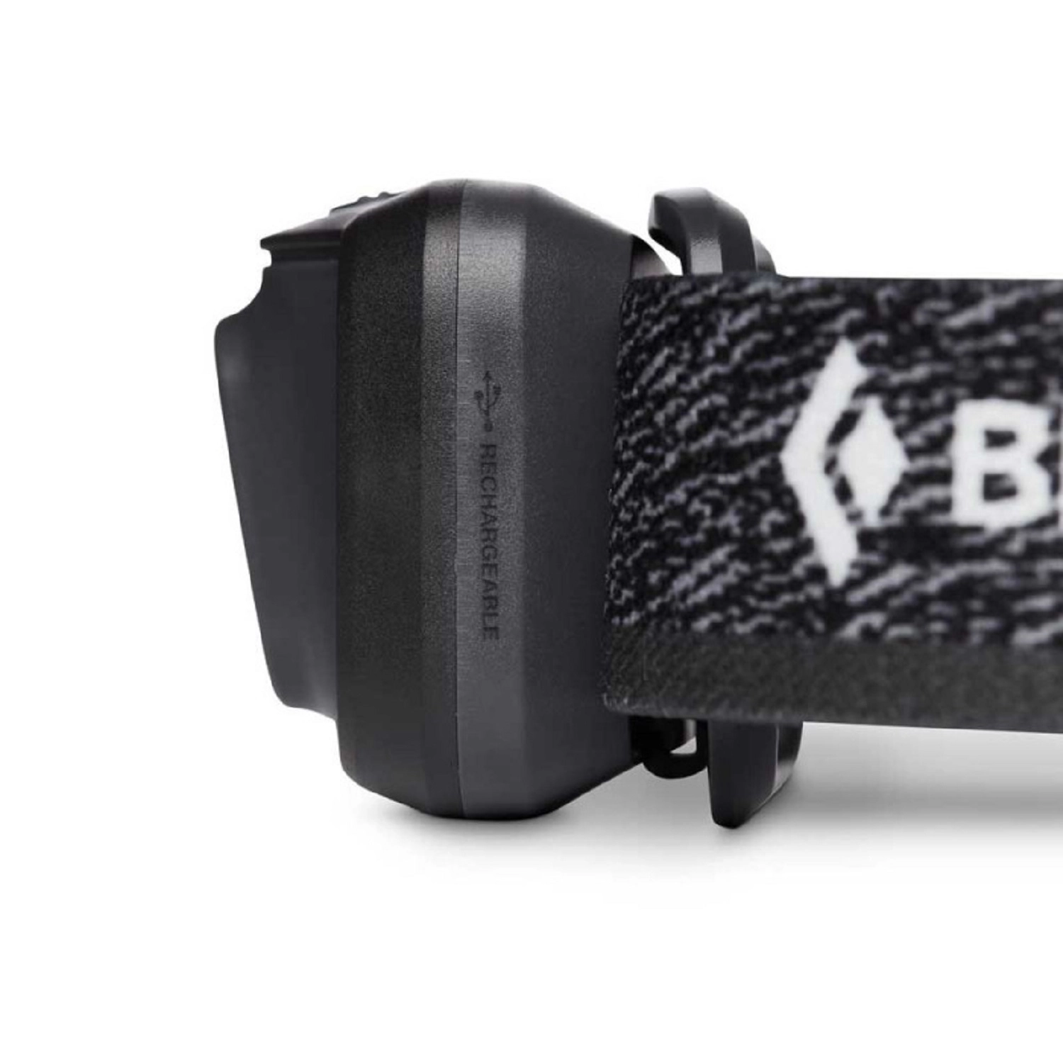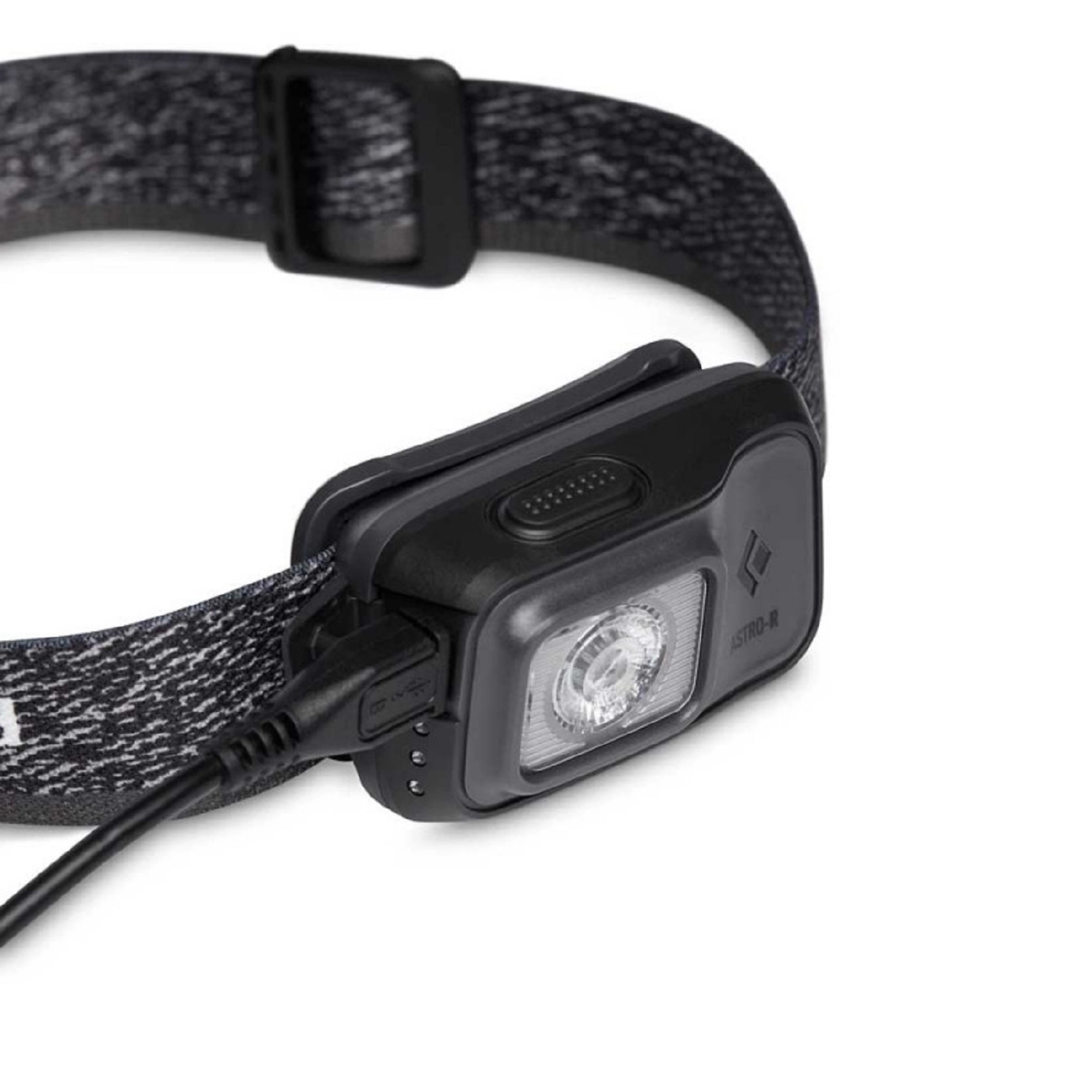 Deze hoofdlamp is afkomstig uit de Astro 300-R serie van het merk Black Diamond. Het materiaal van de lamp bestaat uit kunststof en de elastische band is gemaakt van gerecyclede materialen. De hoofdlamp heeft een maximale lichtsterkte van 300 lumen en u kunt deze gebruiken op meerdere standen, namelijk Full Power, dimmen en knipperend. Daarnaast is de Astro 300-R IPX-4 stormbestendig, zodat u ook in regen of ijzel op pad kunt. U kunt de hoofdlamp opladen via de micro-USB oplaadpoort.