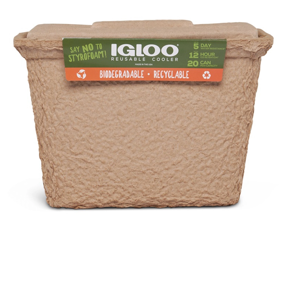 De Igloo Recool 16 Koelbox is ’s werelds eerste koelbox die volledig is gemaakt uit biologisch afbreekbare materialen. De koelbox is namelijk gemaakt van gerecycled papier en AKD. Hierdoor is de koelbox na gebruik volledig composteerbaar is en herbruikbaar. De koelbox heeft een uitstekend koelvermogen en kan ijs tot wel 12 uur lang houden waarbij water tot wel 5 dagen wordt behouden. Verder bevat de deksel vier ingegoten bekerhouders voor het handig neerzetten van een beker en handvaten aan de zijkanten. Hierdoor is de koelbox erg eenvoudig te vervoeren. De koelbox heeft een inhoud van 15 Liter met ruimte voor 20 blikjes en een afmeting van 38 x 28 x 29 cm.