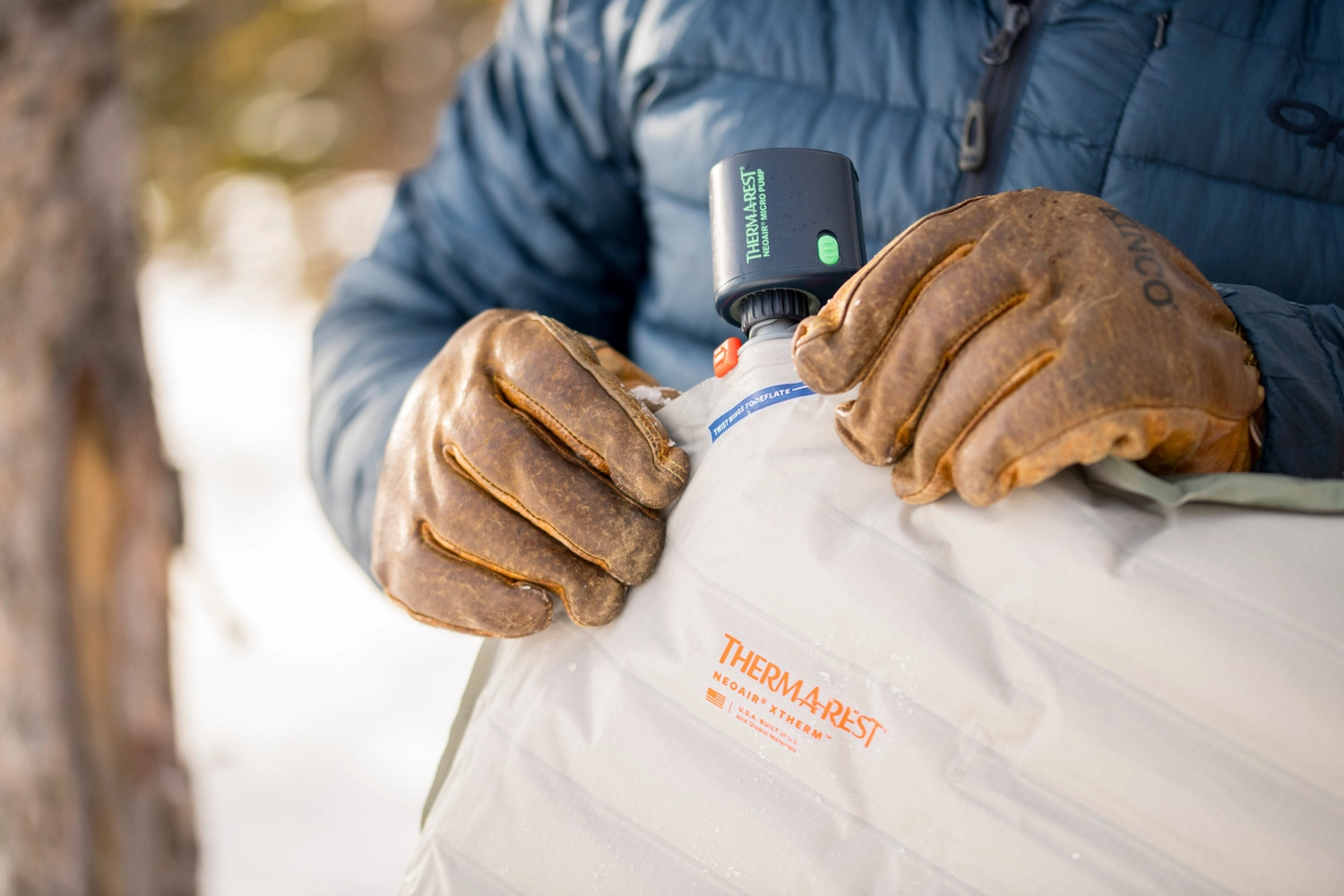 De luchtpomp uit de serie NeoAir Micro Pump van het merk Thermarest is een krachtige en snelle luchtpomp. Het is gemaakt van polycarbonaat en ABS en heeft afmetingen van 6 x 4,2 x 5,5 cm met een dikte van 4 cm. De luchtpomp is licht van gewicht en weegt slechts 65 gram. De pomp kan uw lucht gerelateerde zowel opblazen als leeg laten lopen. De luchtpomp werkt op AAA batterijen (niet inbegrepen). Met deze luchtpomp kunt u gemakkelijk, snel en krachtig opblazen. Het is de perfecte oplossing voor al uw lucht gerelateerde kampeerspullen.