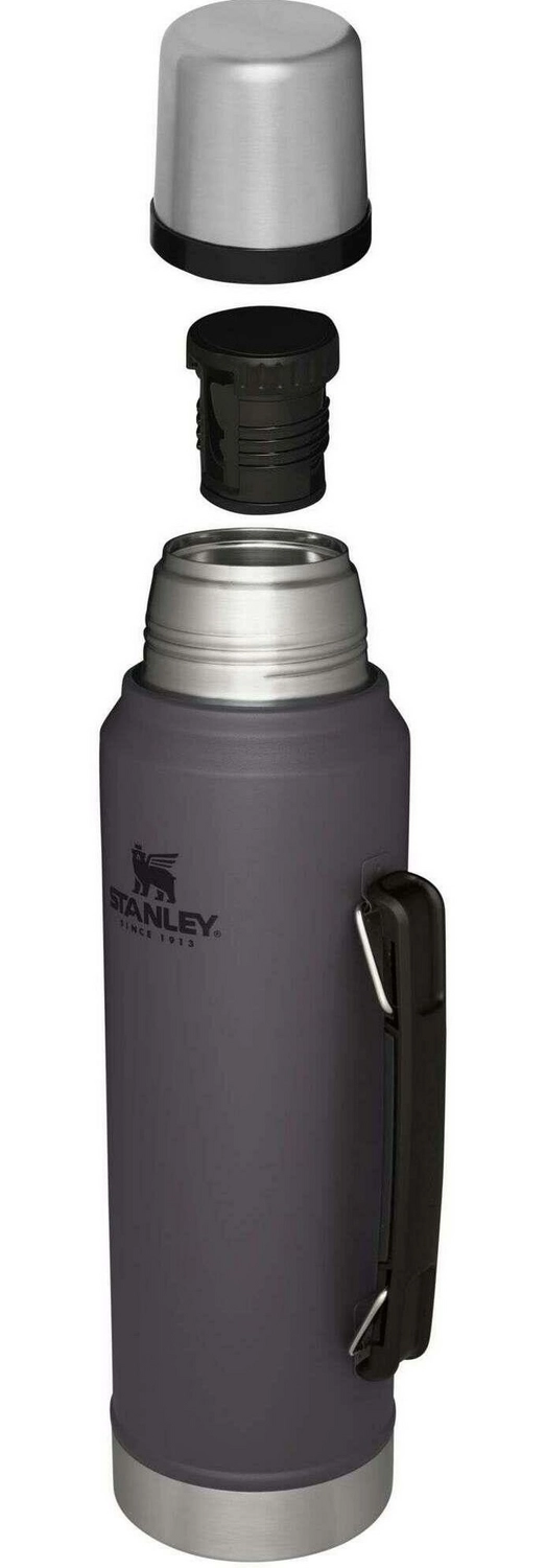 Deze thermosfles van het gerenommeerde merk Stanley heet niet voor niets The Legendary. De fles verwarmt en koelt uw drinken tot wel 24 uur, met ijs zelfs 5 dagen lang! Daarnaast is de fles robuust, deze kan wel tegen een stootje. Ideaal dus voor het kamperen, of neem de thermosfles mee tijdens een dagje uit. De vacuümfles heeft een klassiek model en lekt niet. De fles is voorzien van een Twist-and-pour dop, voor het gemakkelijk in kunnen schenken van drinken. Het drinken wordt geïsoleerd door de dubbele wanden en de geïsoleerde deksel dient ook als beker. De thermosfles is voorzien van een handvat. Na gebruik mag de fles in de vaatwasser. De fles heeft een inhoud van 1 liter en is BPA vrij.