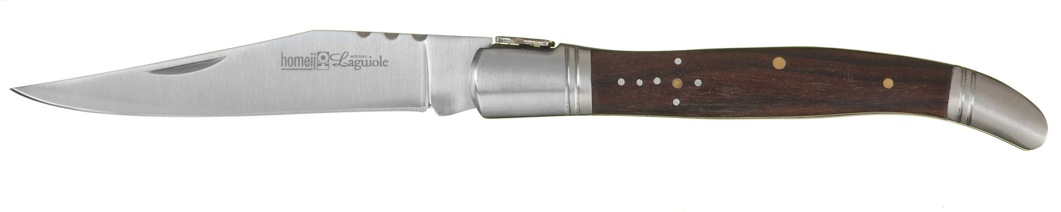 Het Laguiole vouwemes van kwaliteitsmerk Homeij is een perfecte match tussen schoonheid en effectiviteit. Het vouwmes is ideaal om mee te nemen tijdens al uw buitenavonturen of kampeervakanties. Het vouwmes is compact op te bergen en daarom is er altijd nog wel een plekje over om dit belangrijke accessoire mee te nemen in uw rugzak of andere bagage. Het lemmet is van een zeer sterk RVS en het heft is voorzien van een mooie en subtiele decoratie.