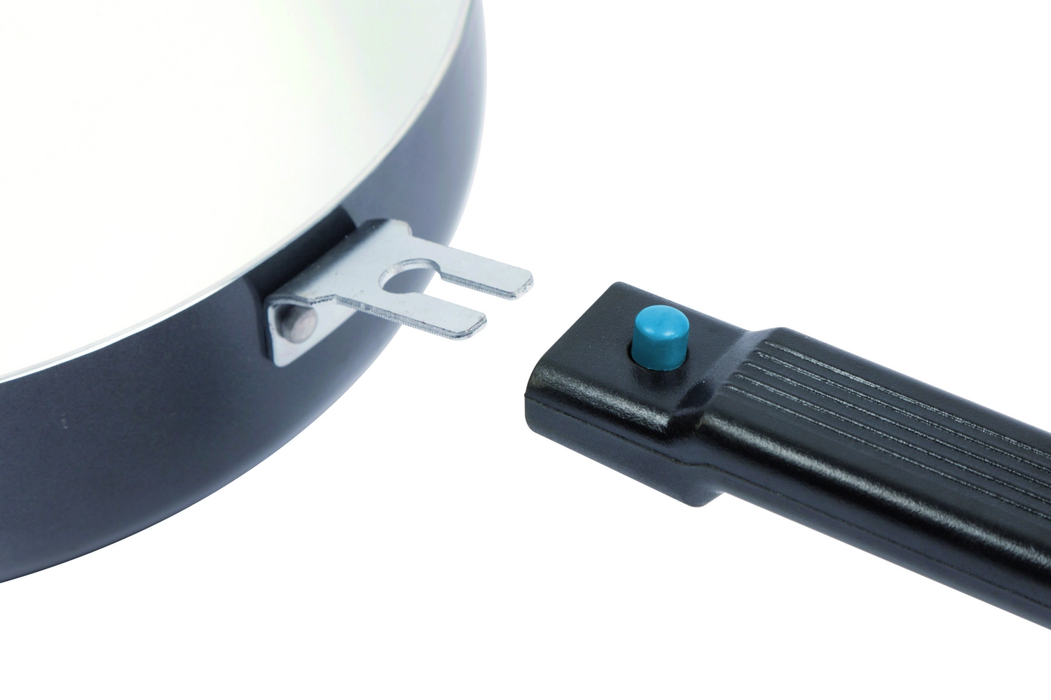 Een compacte wokpan met keramische coating. Ideaal voor het roerbakken van vlees, vis of groente. Deze pan beschikt over een afneembare handgreep en is hierdoor ruimtebesparend. De keramische coating voorkomt aanbakken, is kraswerend en eenvoudig te reinigen. Daarnaast is het gezonder koken, doordat er minder tot geen vet nodig is om te bakken. Geschikt voor de warmtebronnen gas, keramisch en elektrisch.