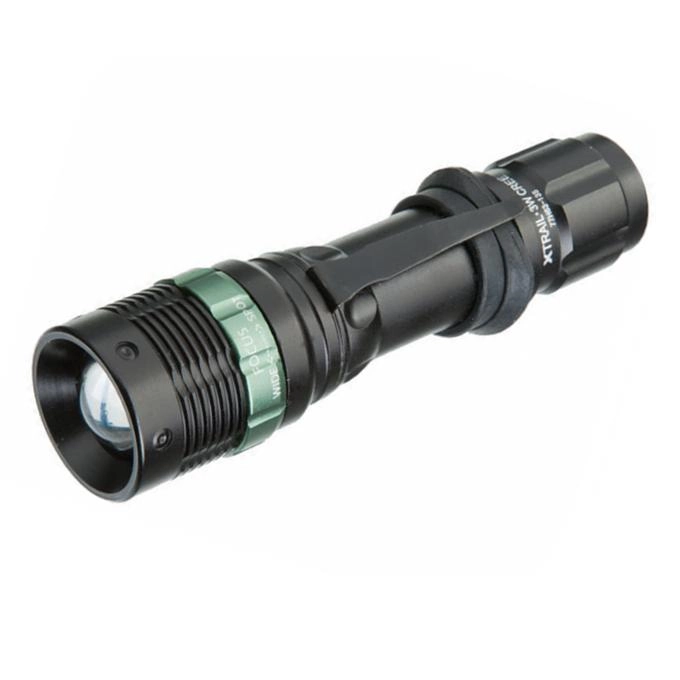 De Xtrail van Homeij is een handige oplaadbare zaklamp, welke werkt op een oplaadbare Li-Ion batterij die een brandtijd heeft van 25 uur. De krachtige LED lamp heeft een sterkte van 180 Lumen waarmee 220 meter ver kan worden geschenen. Deze lichtstraal kan worden ingesteld op een spotlight of op een groot lichtoppervlak. Daarnaast beschikt de Xtrail ook nog over een knipperfunctie.
